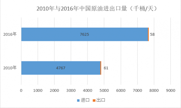 2016年中国原油进出口总量约比2010年增长了( )。