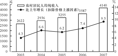2003—2007年农村居民人均纯收入及其增长速度