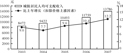 2003—2007年城镇居民人均可支配收入及其增长速度
