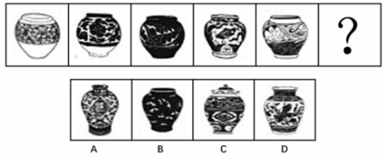 第二步,一条式,从左到右找规律。观察题干五幅图形可发现,五幅图形均满足:大口、大肚子、短颈、无盖,只有B项相符合。