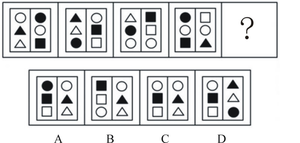 从所给的四个选项中,选择最合适的一个填入问号处,使之呈现一定的规律性: