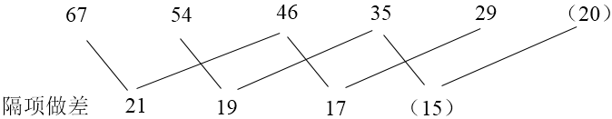 数列变化趋势平缓,考虑做差,隔项做差(前-后)如图所示: