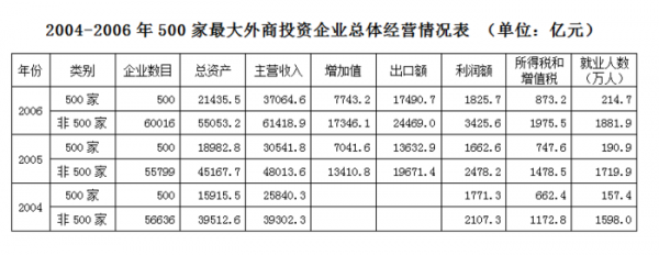 2004年、2005年、2006年我国境内500家最大外商投资企业的总资产分别为:15915.5亿元、18962.8亿元、21435.5亿元。