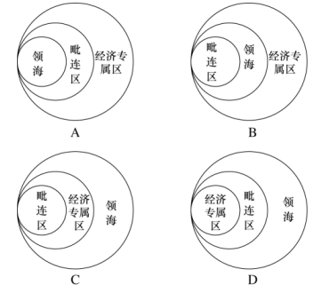根据《联合国海洋法公约》,下列四幅示意图中,关于三个区域位置,表示正确的是: