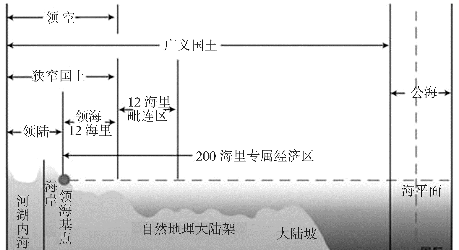 根据《联合国海洋法公约》规定,一国在海上的权益范围依次为:领海、毗连区、专属经济区。领海指沿海国主权管辖下与其海岸或内水相邻的一定宽度的海域,是国家领土的组成部分。《联合国海洋法公约》第3条规定,每一国家有权确定其领海的宽度,直至从按照本公约确定的基线量起不超过十二海里的界限为止。中国政府于1958年9月4日宣布中国的领海宽度为12海里。毗连区是指沿海国领海以外毗邻领海,由沿海国对其海关、财政、卫生和移民等类事项行使管辖权的一定宽度的海洋区域。《联合国海洋法公约》第33条规定,毗连区从测算领海宽度的基线量起,不得超过二十四海里。专属经济区是指领海以外并邻接领海的一个区域。《联合国海洋法公约》第57条规定,专属经济区从测算领海宽度的基线量起,不应超过二百海里。