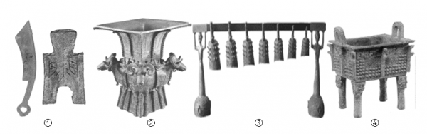 B项:②是四羊方尊,商朝晚期的青铜器。大禹是夏朝的奠基者,生活时期早于商朝,四羊方尊并非大禹铸造。